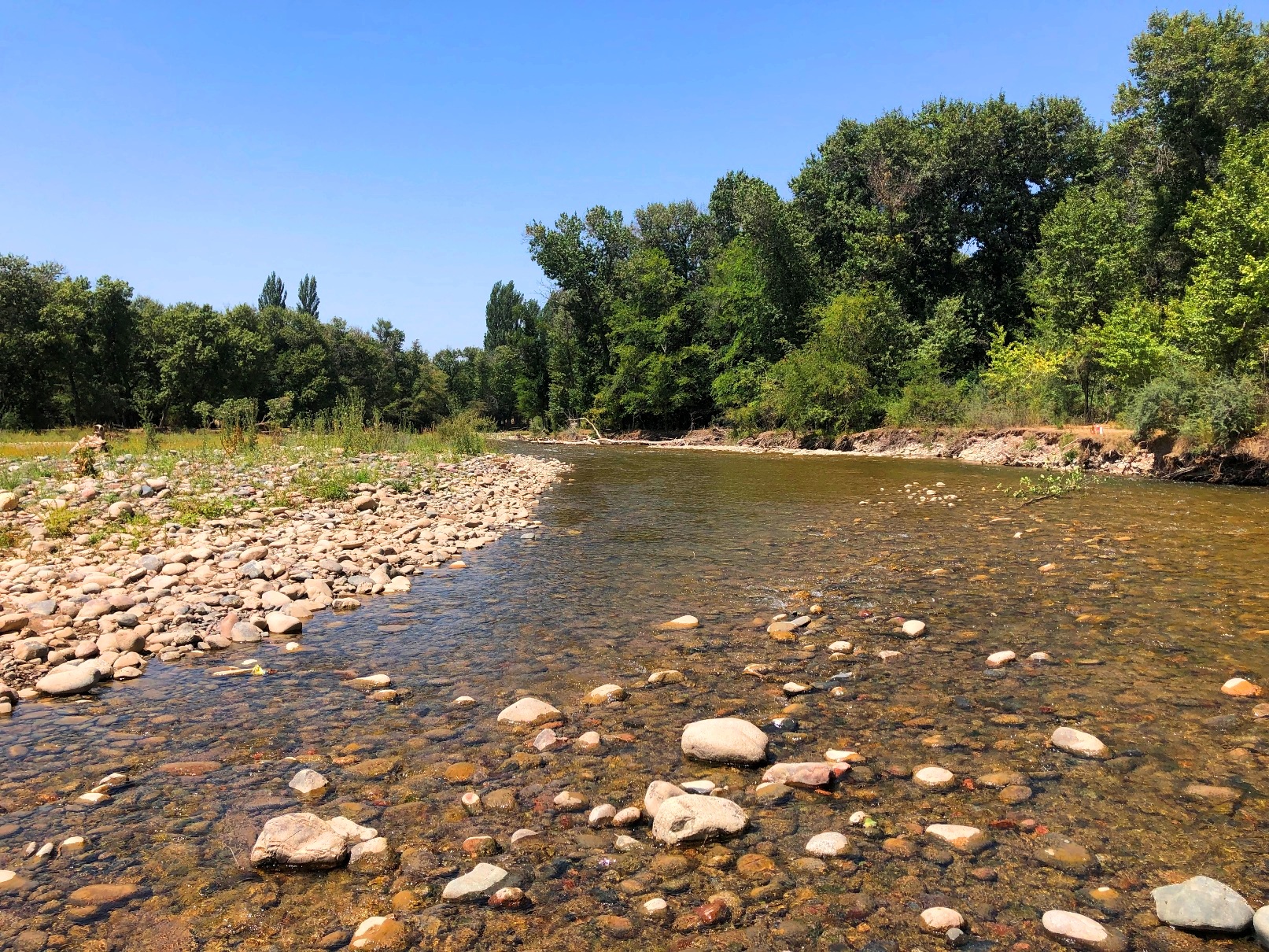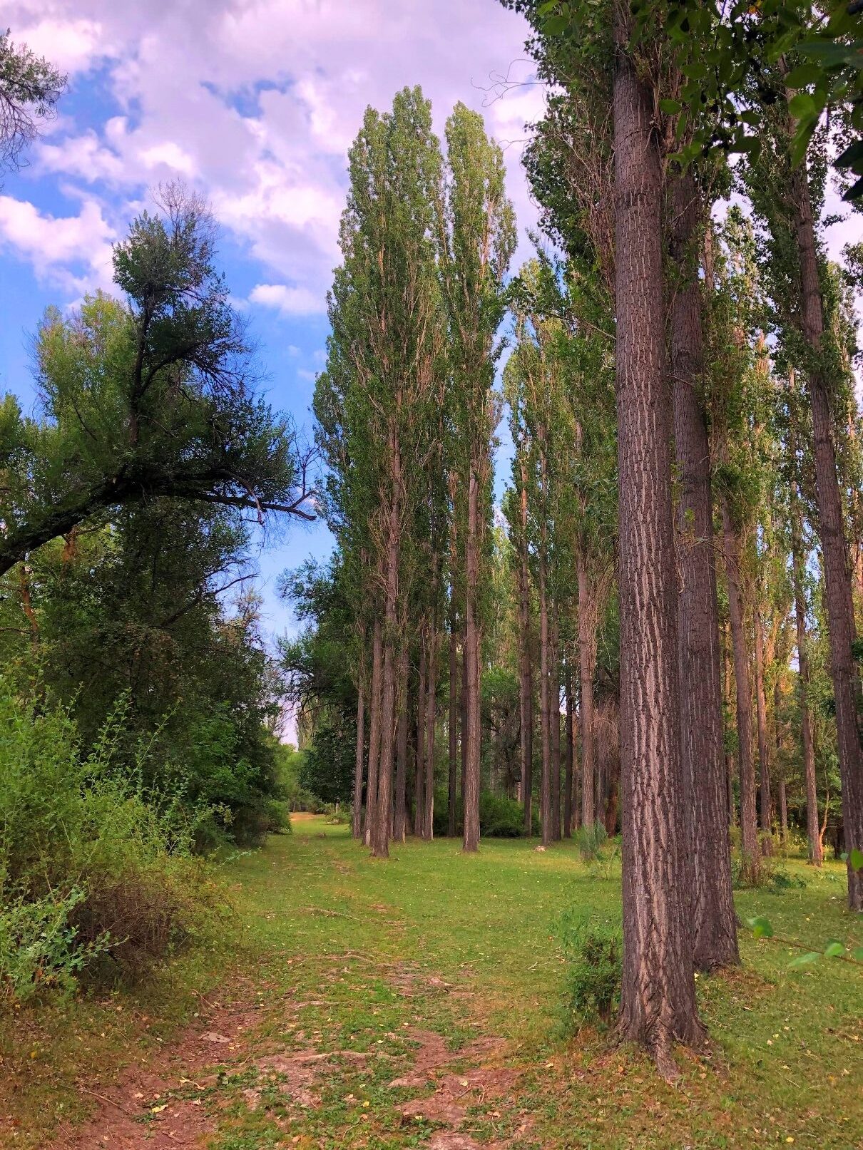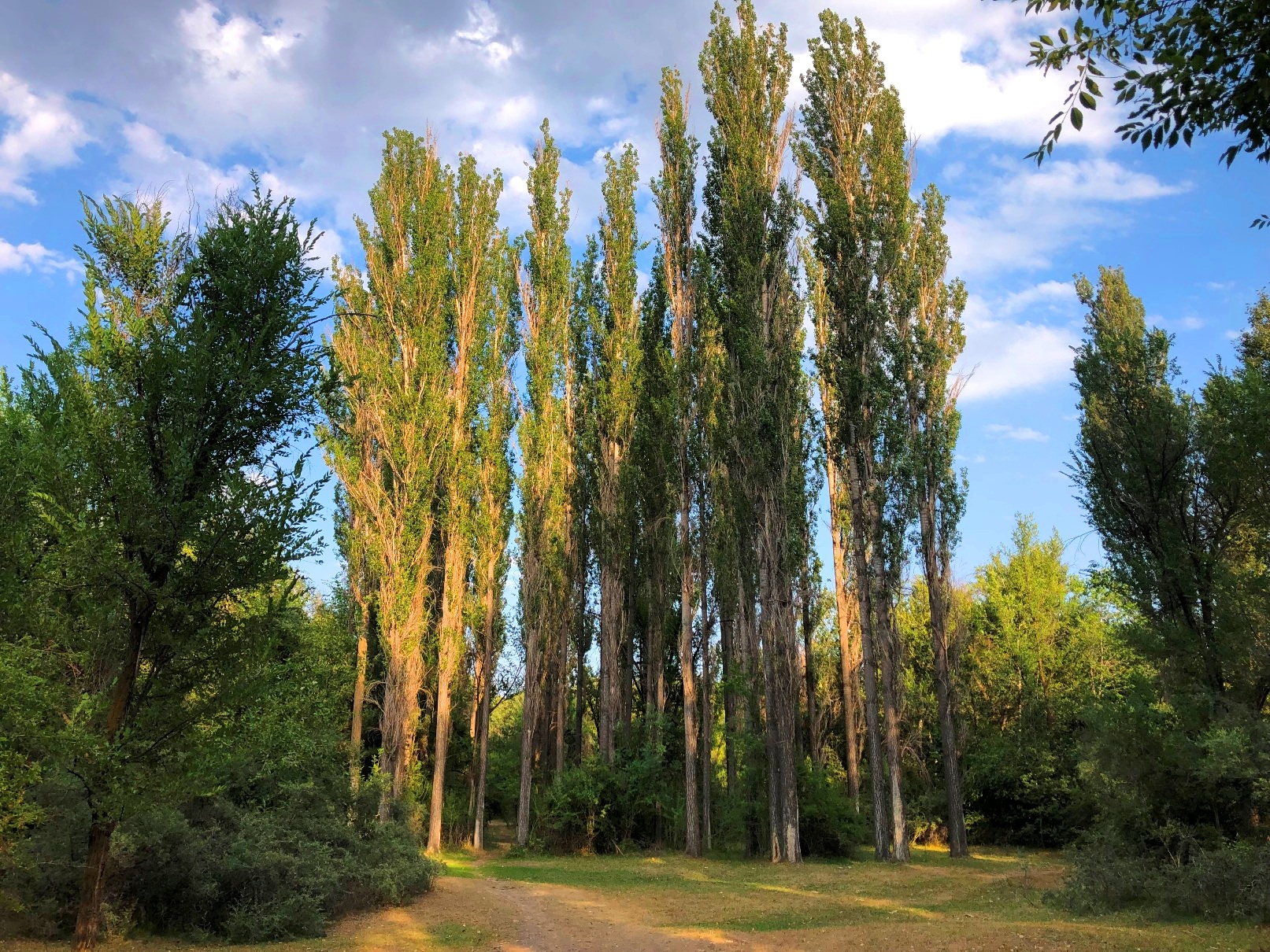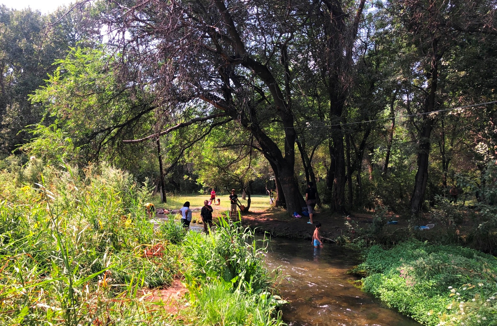 人工的につくられた「水辺の空間」ではない。野生のままの水辺、川が多数の細流となって乱舞交差する緑地帯、というより藪、を人々が歩いてつくった道が続いている。これは地元のガキ大将たちには最高の冒険の遊び場を提供するだろう。日本なら熊でも出そうだが、ここなら出ないことはわかっている。周囲は乾いた岩石の山と平原で、大型獣は棲めない。あまり人に会わないが、特に川べりには家族連れなどもおり、雪解けの冷たい水でも、子どもたちが水浴びをしている。キャンプファイアーをやった跡なども見られる。