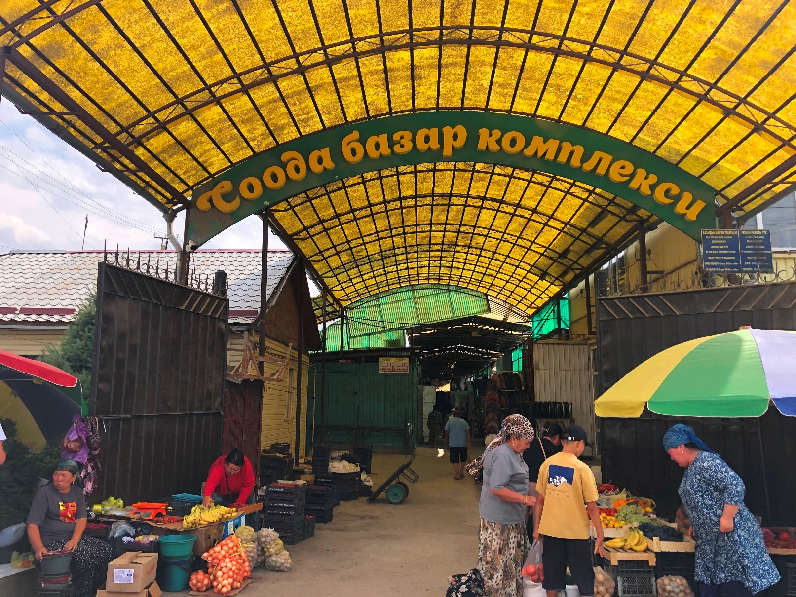 確かに、他の多くの中央アジア諸都市と同じく、小都市タラスもだだっ広く、非個性的な、人が密に関われない都市構造を持っているのは確かだ。その基本は厳然としてある。しかし、そこに中央アジアの人々がうまく人間の居住空間を作り出している点にも気づかなければならない。例えば、中心部バザール周辺の賑わいがある。用意された施設構造物がないところに、人々が勝手に小さな店を繰り出したようなバザールだ。アルマトイで見たような巨大な、こけおどし的とも言える「ソビエト的建築」のバザール建物は用意されていない。そこに店と人が自然に集まり、さらにその周りに、武骨な構造物周囲にやはり小さな店が生まれ、愛すべき商店街tとなった。(アルマトイのバザールも巨大建築の中に人々の空間がうまく作りだされているに違いない。)