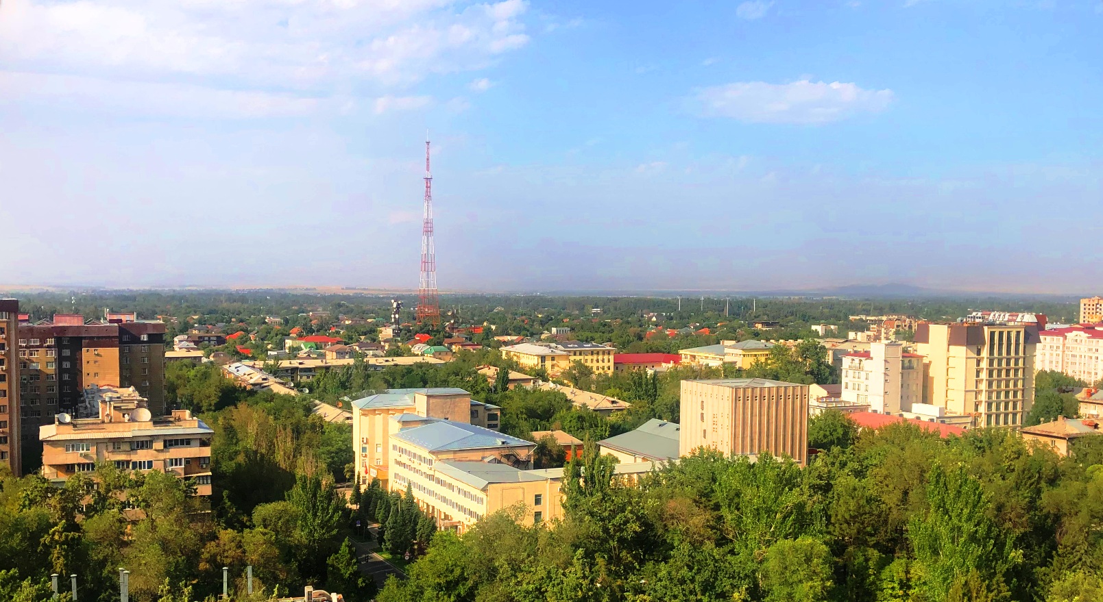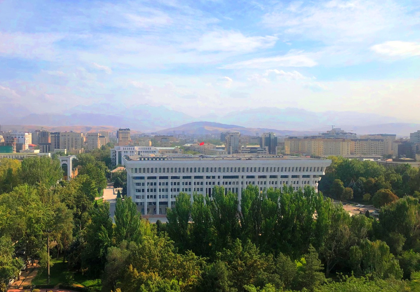 ビシュケク中心部。ビシュケクはチュイ川平原につくられた新しい街だ。