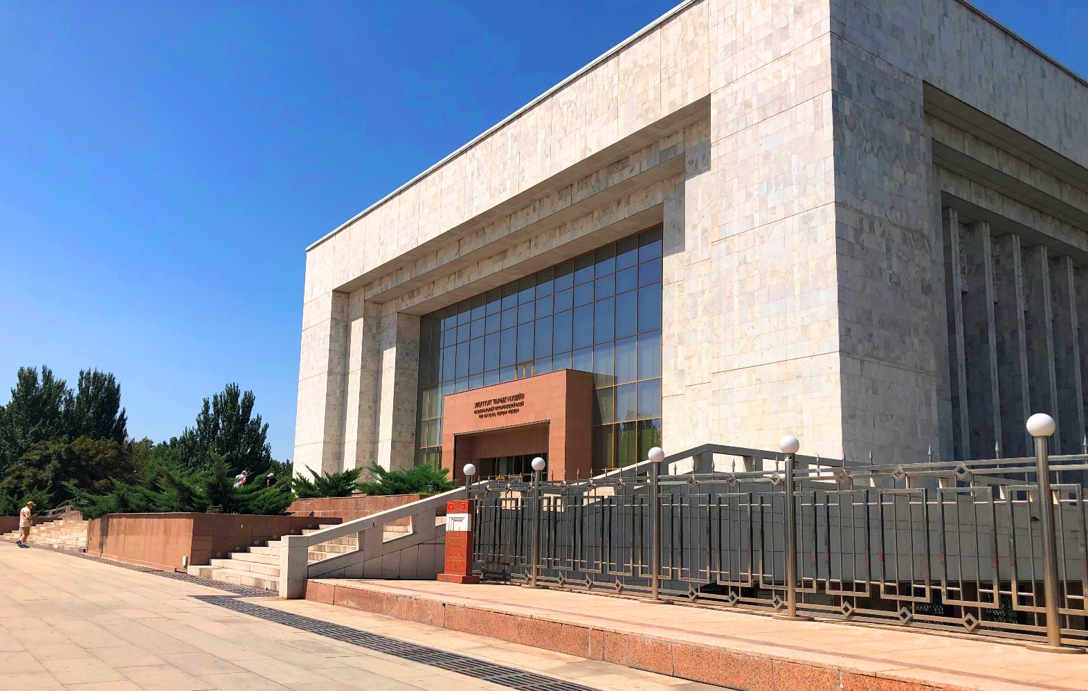 キルギス議会議事堂。裏から見ている。この左手(東)に博物館とアラトー・スクエアーがある。