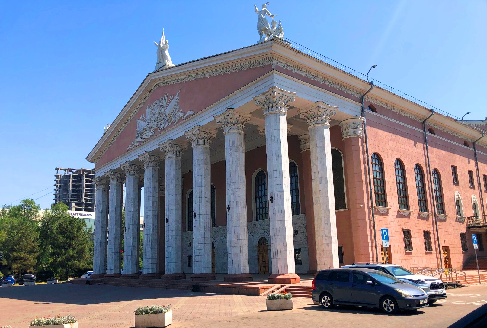 国立学術オペラ・バレエ劇場。マナス叙事詩に見られるように、キルギスの伝統芸術は文書化されるよりも、吟遊詩人などパフォーマンス芸術として伝承されてきた。