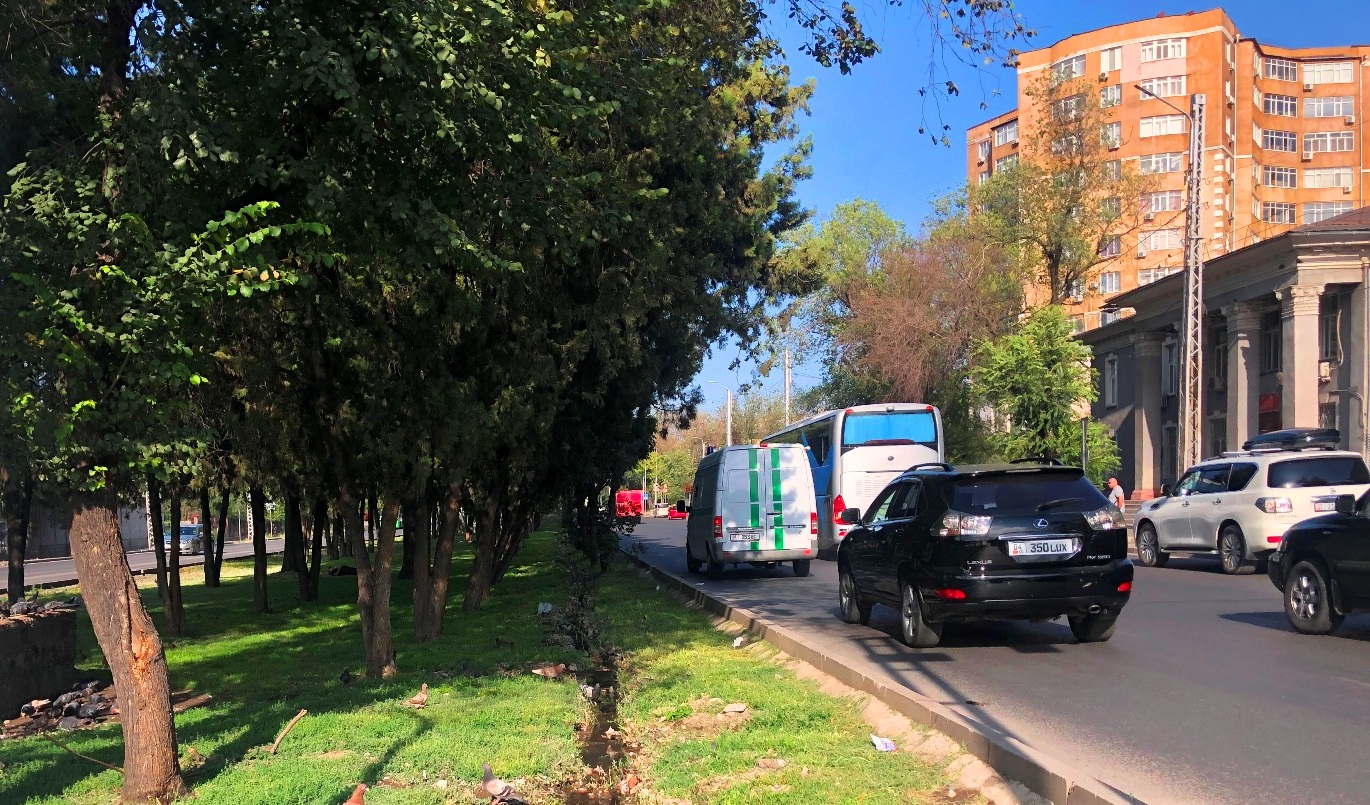ビシュケクの街路。普通の大通りだが、こんな風景がビシュケクの街の典型的な景観。