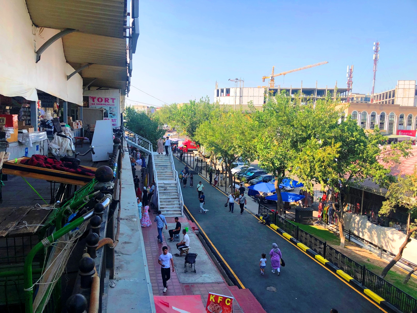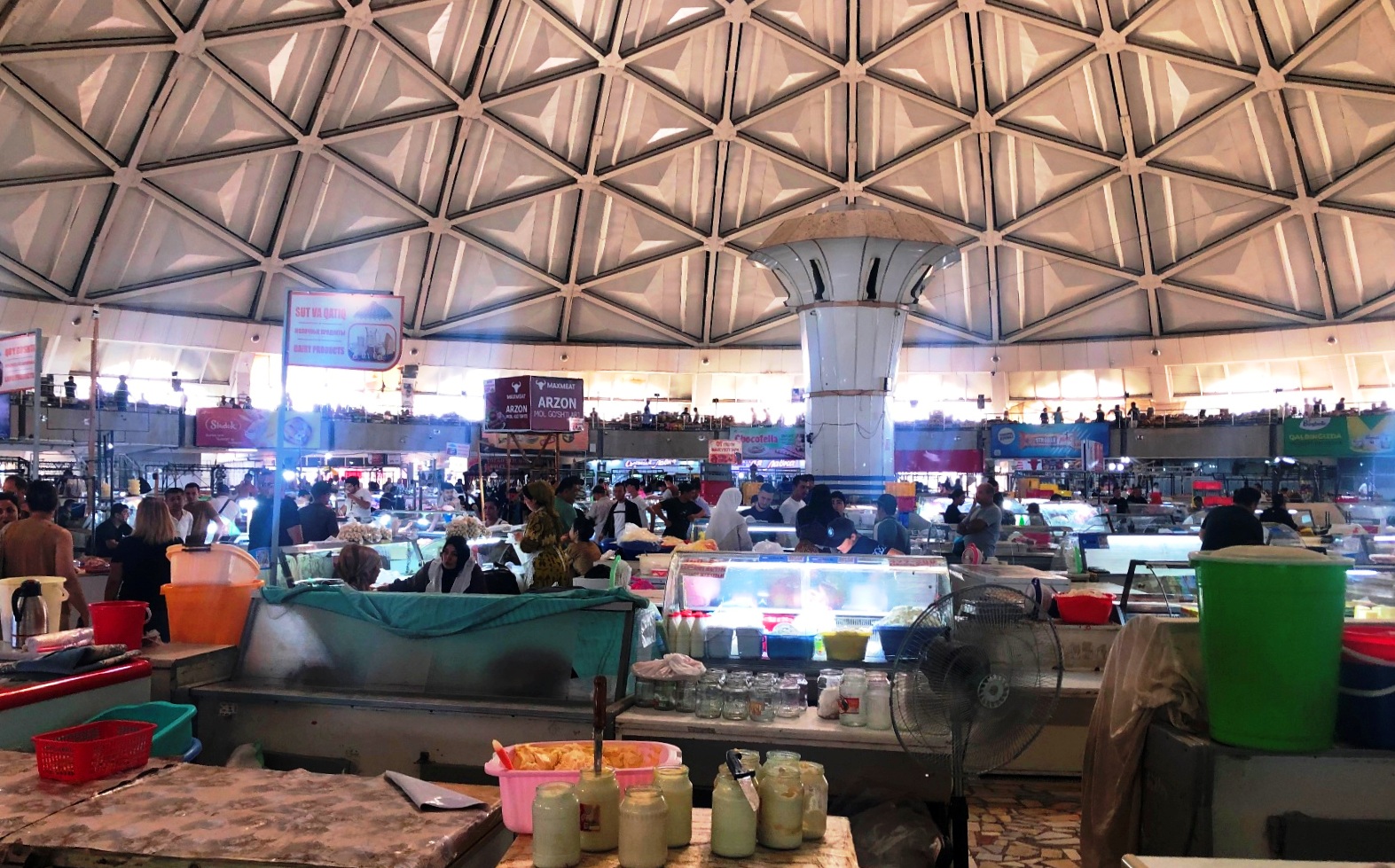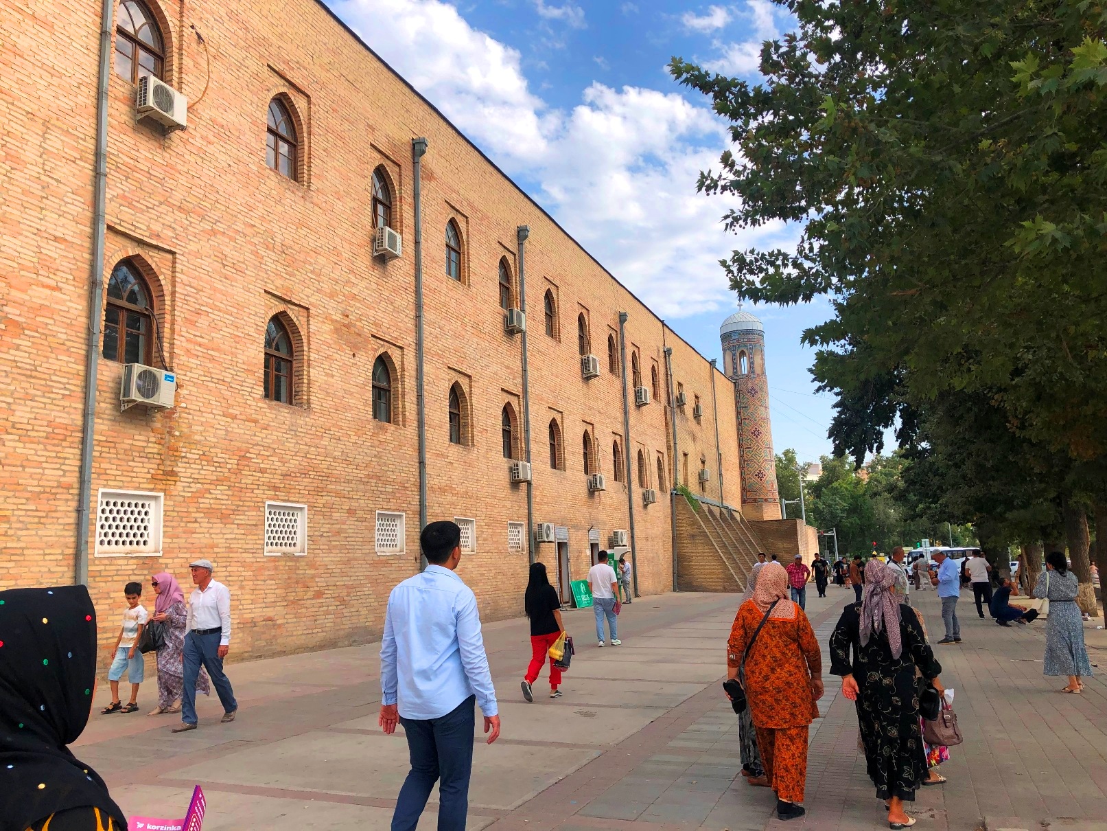 市場のあるところ神が宿る。チュルスー・バザールに隣接して、タシケント最古のホジャ・アフル・ヴァリー・モスク(一般には「ジュマ<金曜>モスク」)と神学校クカルダシュ・メドレセがある。日本でも市場は寺社のそばに立つ。ヨーロッパ中世都市の中心にも市場と大聖堂が立つのが常。単に、祈りの場に人が多く集まるから、というだけでなく、市場と神には何らかの深い関連があるように思われる。