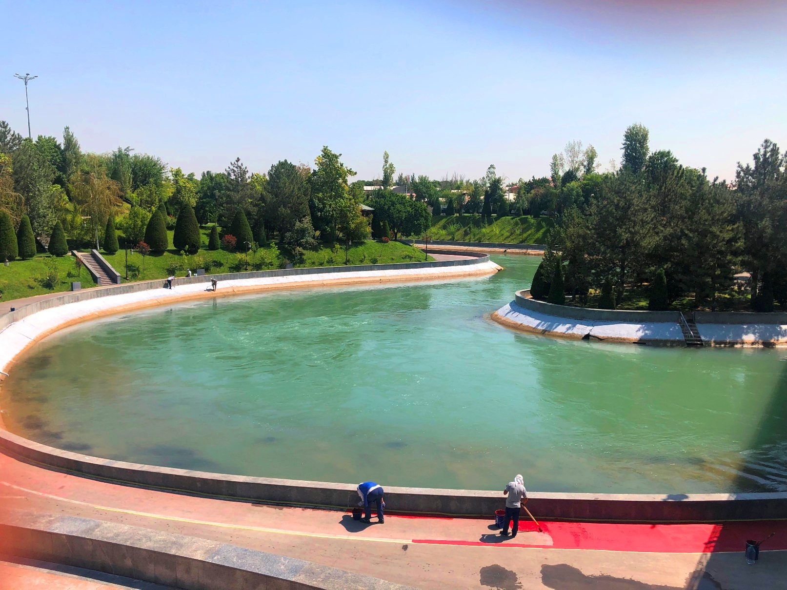タシケントTVタワー近くの安宿が気に入り2度投宿した。近くのアンホール運河を散策。2000年5月に開園した抑圧犠牲者記念公園は、水辺空間の造形が美しい。