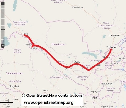 (また、乗り合いタクシーでウルゲンチに帰る。鉄道が並走していた。)