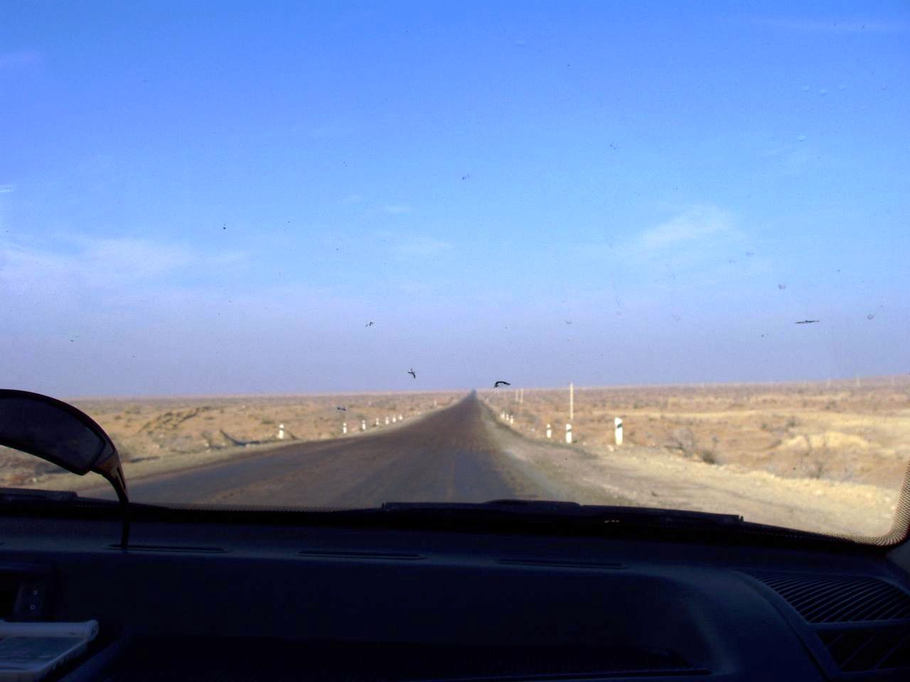 (砂漠の中を一路ウルゲンチへ。)