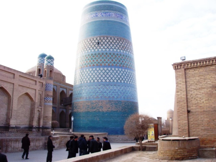 (西門の近くにあるのは未完成のミナレット、カルタ・ミナル。ムハンマド・アミン・ハンが1852年に着工したが、その死(1855年)により中断。)