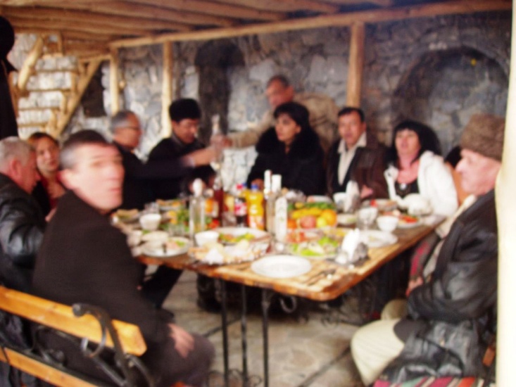 中央アジア風の踊りと言っても、何だ、結局ディスコと同じだ。適当に体を振っていればよい。「お前うまいぞ」とほめられた。ダンスが若者だけのものではない。おじさん、おばさんも気楽に踊る。そのうち70歳という最長老のおじいさんも踊り出した。いいじゃないか。日本の酒宴で訳のわからないドンチャン騒ぎをするより、こうして礼儀正しく?フォークダンスに興じる方が文化的だ。