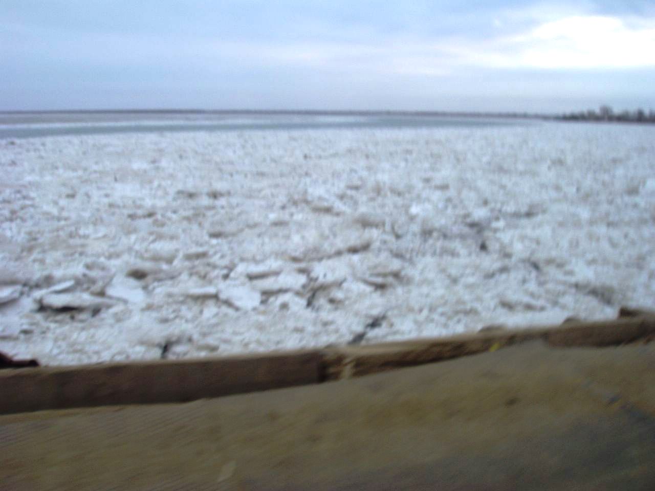 (車から見るアムダリアは凍っていた。)