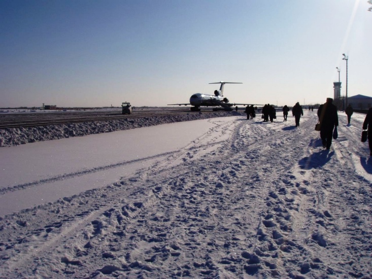 (雪かきをして離陸可能になったウルゲンチ空港。)