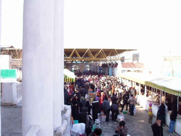 ホテルも小さいB&Bが充実している。25ドルのツイン部屋に入った。私の基準から言えば高いが、ホテルの人が感じいいので、ここにした。明らかに欧米人向けにつくられたB&Bと思われる。床も壁もベッドも掃除が行き届き清潔。品のいい陶器や絨毯などがホテルの至る所に飾られ、オーナーのセンスを感じさせる。光沢を含んだ清楚な床は、ほこり道を歩いてきた私の土足では申し訳ないくらいだ。マネジャーも英語がよくできる。ただし、客は私以外にはほとんどいないようだ。この厳寒期の中央アジアに来る物好きはあまり居ないらしい。