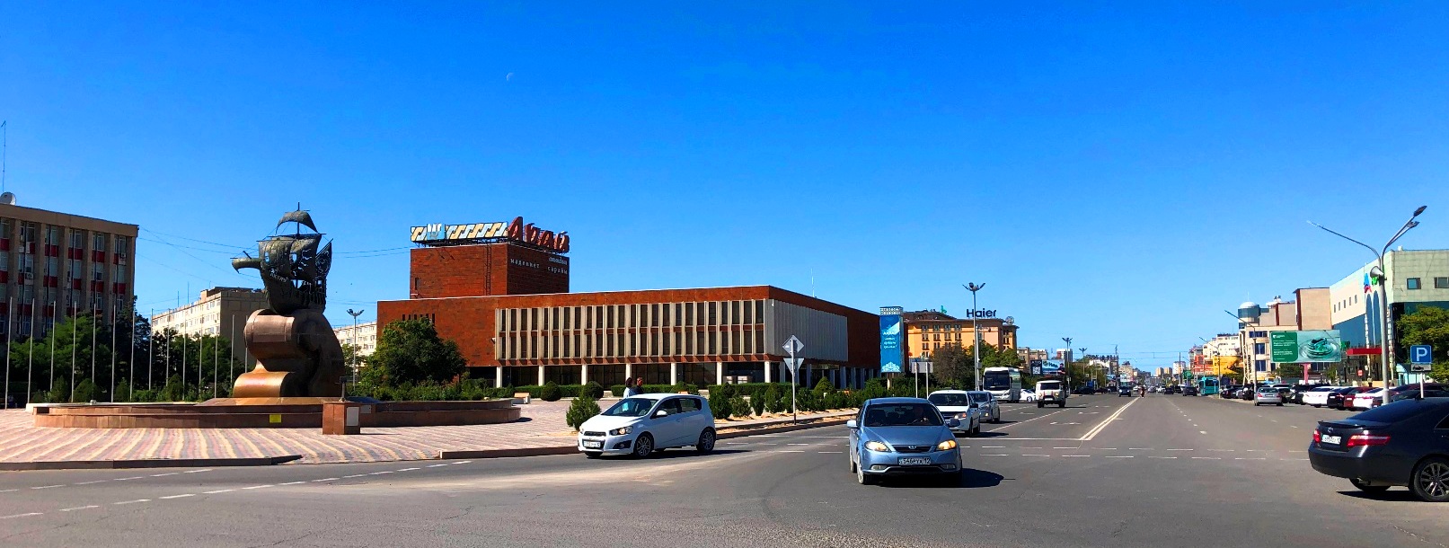 しかし、来て見て感じた印象は「これはロサンゼルスだ」。だだっ広い。駅から市街まで15キロあり、アメリカのような高速道路が走り(中央分離帯が単なる砂地)、ロサンゼルスのようにたくさんの車が走っている。かの街のような車社会だ。市街もソ連型都市だから、ある意味ロサンゼルスよりだだっ広い。