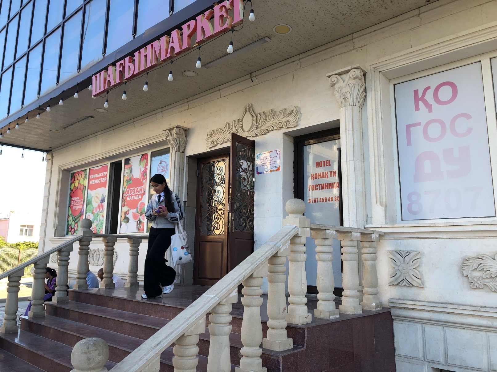 青年は20歳でヌレ君。ちょうどビル内IT企業の仕事が終わって出てきたところだという。この辺には安宿はない、といったホテル事情を説明したり、アプリで安宿を探してくれたりした。結局すぐ近くに1万テンゲ(2700円)の宿を探し当ててくれた。